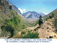una mula para carga de mochilas y carpa, enfilamos por