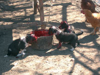 y gallinas muy coloradas comiendo tierra. Alguien salió