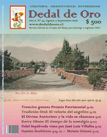 Portada del N° 44, Agosto y Septiembre. Una foto de calle Comercio de San José de Maipo del año 1900 aproximadamente.