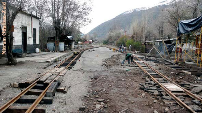 LUIS LEÓN CARGA RIELES DONADOS POR EL FCAB EN LA ESTACIÓN PRAT PLENO DESIERTO DE ATACAMA.