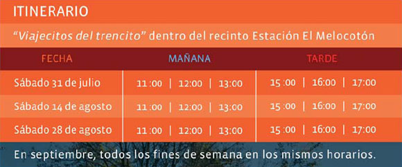 El día sábado 31 de Julio, año del bicentenario, el tren comenzará a moverse regularmente dentro de la Estación El Melocotón (ver abajo).
