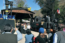 Mil ochocientos visitantes se dieron cita en la Estación El Melocotón, Monumento Histórico Nacional desde 1991. El trencito hizo veintidós viajecitos dentro del recinto de la estación, conformado por una locomotora reparada y un centenario coche de pasajeros restaurado, piezas originales del Tren Patrimonial del Cajón del Maipo -ex Tren Militar- declaradas Monumento Histórico Nacional en 2009. Durante la jornada, ochocientos viajeros ansiosos abordaron alegremente el trencito cuantas veces llegara éste, pitando y rodando lentamente, al andén de la estación.