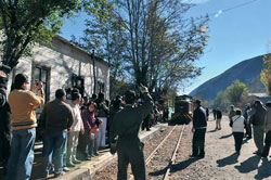 Un día de fiesta popular en que la comunidad nuevamente se ha sentido convocada al encuentro en torno a este histórico tren de montaña que renace y que cada vez se expresa con mayor nitidez. En un país donde los trenes han ido desapareciendo con incomprensibles argumentos, el renacer de este trencito, único por sus características, despierta el interés y el entusiasmo de los visitantes al verlo desplazarse con galanura sobre la vía férrea reconstruida dentro del recinto de la estación, tal cual era antiguamente. Entonces, aflora la nostalgia de quienes hasta los años setenta viajaron en estos coches de madera, fuesen turistas que visitaban el Cajón del Maipo para excursionar o bien sus propios habitantes, a los cuales prestaba servicio cotidiano. Los más jóvenes se entusiasman, lo fotografían, graban videos y ya lo ven llegando nuevamente a El Volcán. Y brota espontánea la alegría desencadenada de los niños que lo abordan con prisa. Muchos de ellos nunca habían subido a un tren y, entonces, el viajecito se transformó en una experiencia iniciática. Resulta extraño oír a un niño decir que nunca había subido a un tren… y nos preguntamos, ¿cuántos niños en Chile nunca habrán subido a un tren?