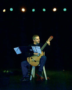 El Guitarrista de Papel consiste en una serie de recitales destinados a difundir la música para guitarra clásica en los colegios básicos. Busco promover un estilo de música que, quizás, es poco conocido por nuestros estudiantes, pero se trata de buscar, de recorrer, sin prejuicios, la música de arte. La duración de este recital es de treinta minutos, pero sin embargo en la primera presentación, en la escuela de El Melocotón, el 2 de septiembre recién pasado, estuvimos una hora. Se escoge un abanico de obras para guitarra que permiten relatar su historia y mostrar sus recursos. Voy solo con mi guitarra y, por el momento, se pide "una colaboración simbólica" (pues no hay financiamiento) que queda a criterio del Director del establecimiento.