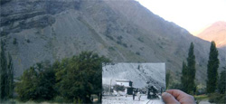 acampar en el pueblo El Volcán y por esto adjunto una foto de 1925 (conseguida en el único almacén del pueblo) sobrepuesta en el lugar donde estaba la estación de trenes en esos tiempos. ¡Espero poder contribuir a la a la revista!