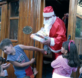 El tren llegó tocando la campana los niños corrieron el viejo pascuero repartió los regalos y la juventud la batucada alegró de principio a fin...