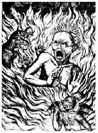 «Primero necesitamos saber cómo varía la masa del Infierno en el tiempo. Para ello hemos de saber a qué ritmo entran y salen las almas allí. Pero tengo entendido que, una vez dentro del Infierno, las almas ya no salen más. Por tanto, no se producen salidas. En cuanto a cuántas entran, la mayoría de las religiones declara que si no perteneces a ellas, irás al Infierno. Dado que la gente no pertenece a más de una religión, podemos concluir que todas las almas van al Infierno. Con las tasas de nacimientos y muertes actuales, se deduce que el número de almas en el Infierno crece exponencialmente. Por otro lado, según la Ley de Boyle, para que la temperatura y la presión del Infierno se mantengan estables, el volumen debe expandirse en proporción a la entrada de almas. Hay, por tanto, dos posibilidades: 1ª: Si el Infierno se expande a una velocidad menor que la de entrada de almas, la temperatura y la presión en el Infierno crecerán hasta que éste se desintegre.